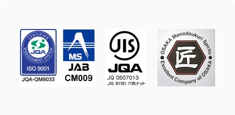 品質保証は安心のISO9001・JIS認証がベースとなっております。信頼のナットとして弊社製品は国内外問わず様々な重要締結箇所で使用されております。